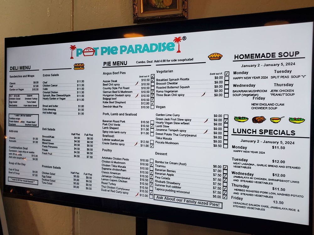 On top of this, Pot Pie Paradise & Deli is accommodating with wheelchair access, outdoor seating, and various payment options, including cryptocurrency. Come savor the hearty flavors and feel the warmth of a true community space!